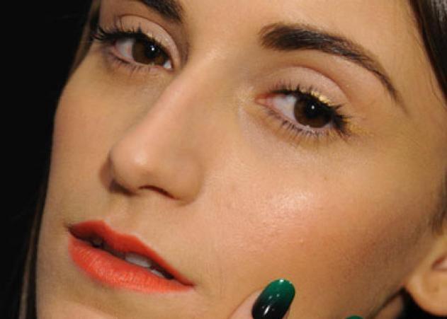 Τα νύχια είναι δημιούργημα της Wanda Ruiz (γνωστή nail artist) και έγιναν με προϊόντα CND. Πώς; Αυτό που μας προτείνει ακούγεται εύκολο αλλά νομίζω ότι χρειάζεται πολύ practice για να το πετύχεις (θα το δοκιμάσω ξανά και ξανά απόψε!). Βάψε τα νύχια σου με την απόχρωση Inkwell από CND κι έπειτα τοποθέτησε στις άκρες τις αποχρώσεις Midnight Sapphire, Anchor Blue, Rouge Red ή Green Scene. Το μυστικό, όμως είναι: άπλωσε ένα στρώμα του top coat Air Dry της CND ή οποιουδήποτε άλλου top coat έχεις στο ντουλάπι σου προτού προλάβει το βερνίκι να στεγνώσει!