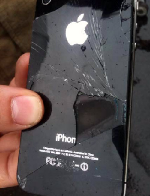Κρίνοντας από μια φωτογραφία της συσκευής, φαίνεται να πρόκειται για ένα iPhone 4. Μπορείτε να δείτε πολύ καθαρά τις ρωγμές και την τρύπα στο πίσω μέρος της συσκευής, από όπου ο καπνός έβγαινε έξω και το κόκκινο φως εκπέμφθηκε.