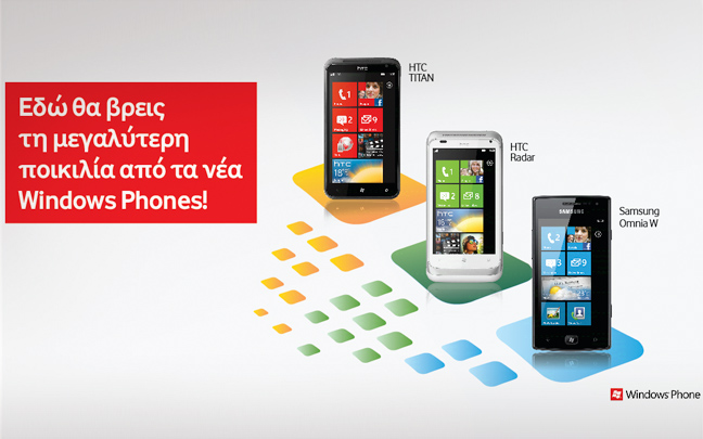 Για περισσότερες πληροφορίες για τα νέα Windows Phones μπορείτε να επισκεφθείτε το www.vodafone.gr/portal/WindowsPhone7-5.