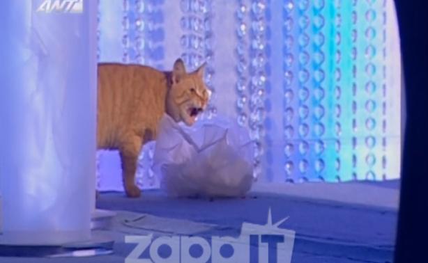 Μια πανέμορφη, πορτοκαλί και ...αδηφάγος γάτα μπήκε στο πλατό του Dancing On Ice και έπεσε με τα μούτρα σε μια σακούλα με σουβλάκια! Την γάτα είδε η Τζένη Μπαλατσινού και ειδοποίησε τον Πέτρο Κωστόπουλο, ότι πλέον τα σουβλάκια του ήταν ...παρελθόν! Για τα επόμενα τρία λεπτά, το νευρικό γέλιο κριτών και παρουσιάστριας δεν άφησε την εκπομπή να εξελιχθεί κανονικά.