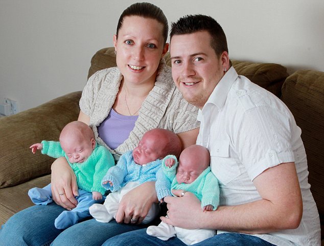 Οι γονείς τους από το Trowbridge του Wiltshire είναι παντρεμένοι δύο χρόνια και χάρηκαν πολύ όταν έμαθαν ότι είχαν συλλάβει τρίδυμα με φυσιολογικό τρόπο. Όλα κυλούσαν καλά μέχρι που η Rachael άρχισε να υποφέρει από πυελικούς πόνους. «Ξαφνικά μια μέρα έσπασαν τα νερά μου και πήγα εσπευσμένα στο νοσοκομείο. Πανικοβλήθηκα και φοβήθηκα ότι δε θα κατάφερναν να επιζήσουν. Ήταν απαίσιο συναίσθημα» προσθέτει.