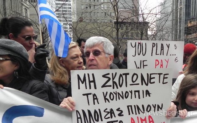 Οι Έλληνες της Νέας Υόρκης, μαζί με πολλούς Αμερικανούς που συμπαραστέκονται στην Ελλάδα πήραν μέρος στην χθεσινή συγκέντρωση στο Μανχάταν.