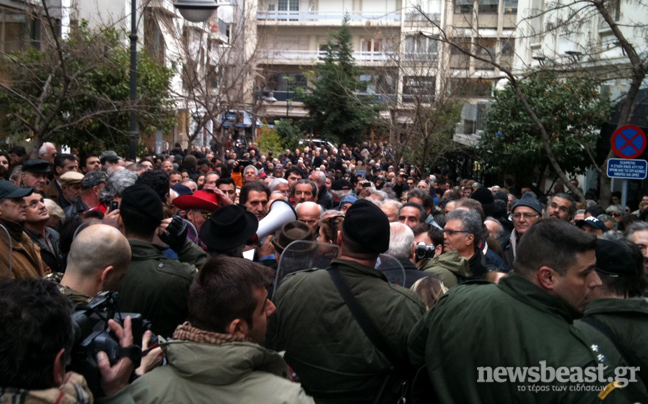 Όταν τον αντιλήφθηκαν οι διαδηλωτές, αρχικά του επιτέθηκαν φραστικά. Οι πιο θερμόαιμοι όμως άρχισαν να τον κυνηγούν, φωνάζοντάς του «θα φάτε ξύλο όλοι». Του επιτίθεντο και τον χτυπήσουν με μπουνιές και κλωτσιές με αποτέλεσμα να τον… ματώσουν.