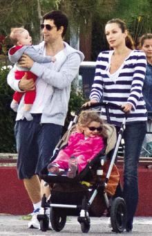 Την ίδια στιγμή ο κατάξανθος 7 μηνών μπέμπης τους, καθισμένος στο καρότσι του, δεχόταν τη φροντίδα της γοητευτικής μητέρας του και χαμογελούσε στα γνωστά νάζια της αδερφούλας του.