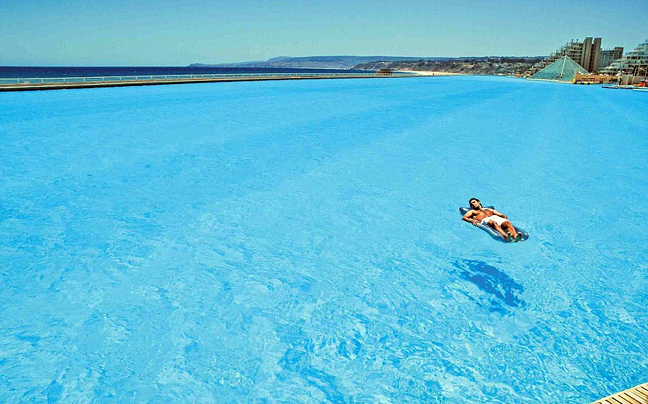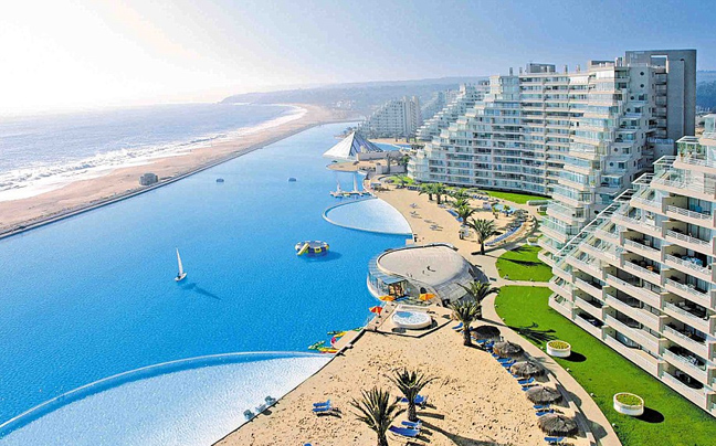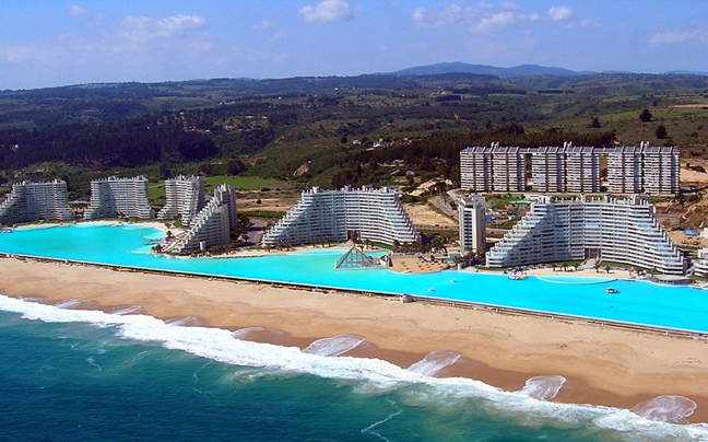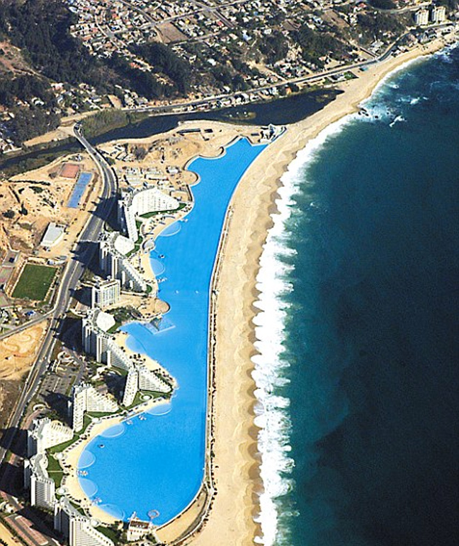 Στο παραδεισένιο καλοκαιρινό θέρετρο San Alfonso del Mar Resort στη Χιλή, μια γρήγορη βουτιά θα μπορούσε κάλλιστα να μετατραπεί σε… μαραθώνιο! Πρόκειται για τη μεγαλύτερη εξωτερική πισίνα στο κόσμο, με μήκος περίπου ένα χιλιόμετρο σε (965 μέτρα) - όσο 20 πισίνες ολυμπιακών διαστάσεων.